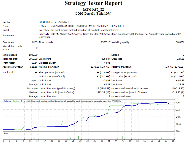 - Automatic Trading: Leveraging its advanced algorithm, Acrobat FX 2 EA automates the trading process, allowing traders to engage in the market efficiently and effectively.