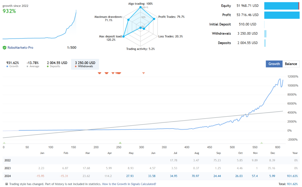 • Live Testing Duration – The Alpha EA has MQl5 live signals for 8 months, a process crucial for validating its effectiveness in real market conditions.