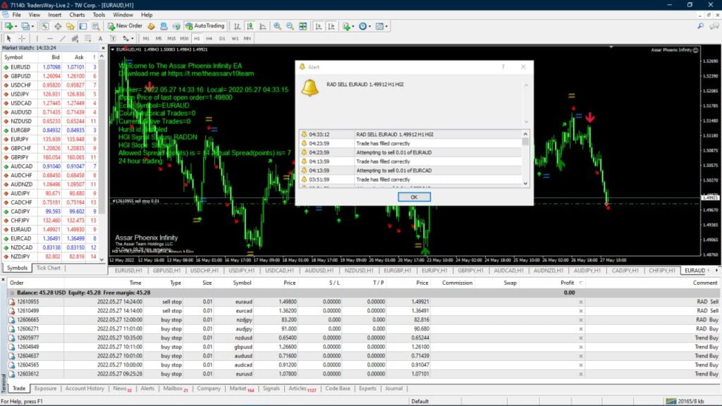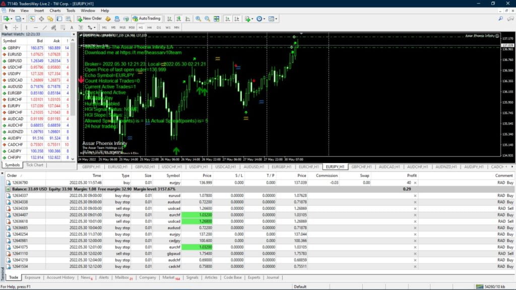 Assar Phoenix Infinity also integrates the “nanningbob’s Holy Grail Indicator” (HGI), which offers five distinct trading methods to adapt to various market conditions: