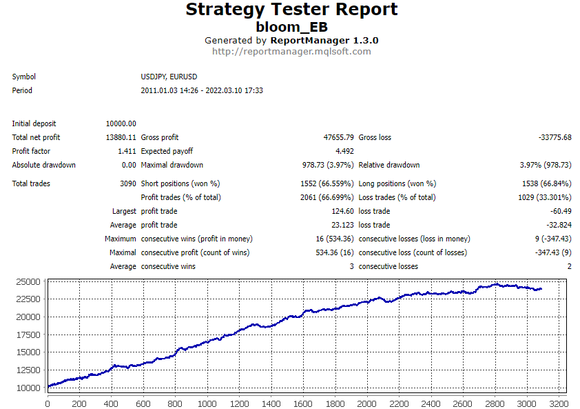 To get the most out of Bloom EA, a minimum account balance of $100 is recommended, with a trading volume of 0.01 lots per pair. The EA performs best when run on major currency pairs like EURUSD and USDJPY simultaneously, although it is versatile enough to operate on any pair. Timeframes do not restrict its functionality, as it is equipped to perform equally well across all trading intervals.