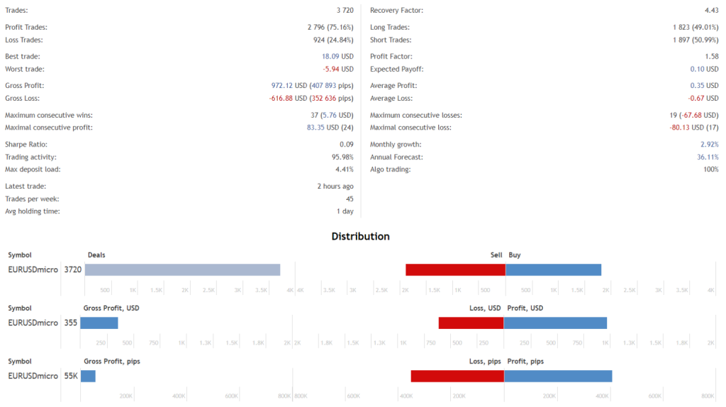 To address the high-risk nature noted in the EA’s trading strategy, a more conservative approach is advisable. The developers recommend starting with a standard account balance of $1000 and a lot size of 0.01. However, to minimize risks, starting with a $100 cent account (or its equivalent in a standard account) could be a safer alternative, targeting an average monthly gain of around 7%. This conservative strategy makes the Brilliant Pro EA more suitable for traders with different capital sizes and risk tolerances.