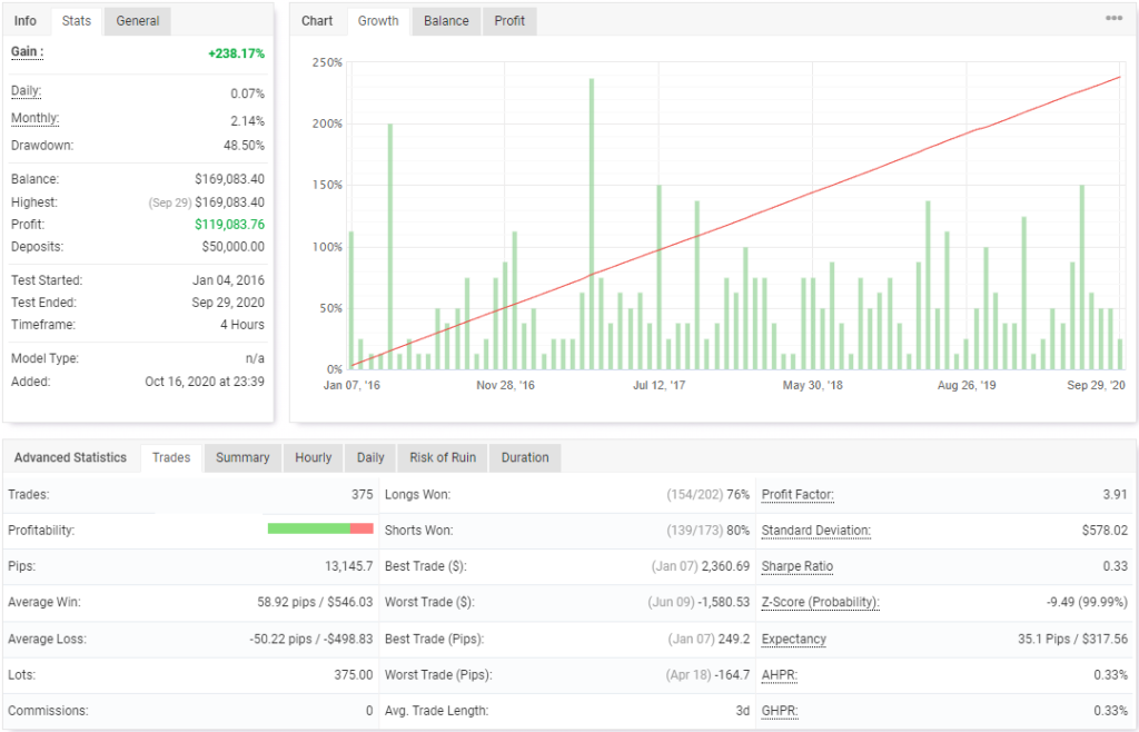 The EA eschews the common scalping strategy, which seeks to profit from small price changes. This approach not only reduces transaction costs but also lessens the dependency on extremely volatile market movements, leading to more stable and predictable results.