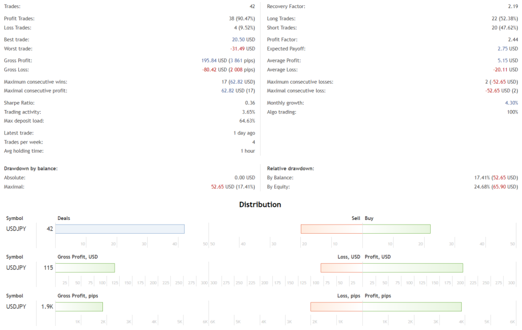 • Risk Management – The system does not employ high-risk strategies like martingale or grid trading. It opens only one trade at a time, and each trade is protected by a stop-loss order, aiming to minimize potential losses.