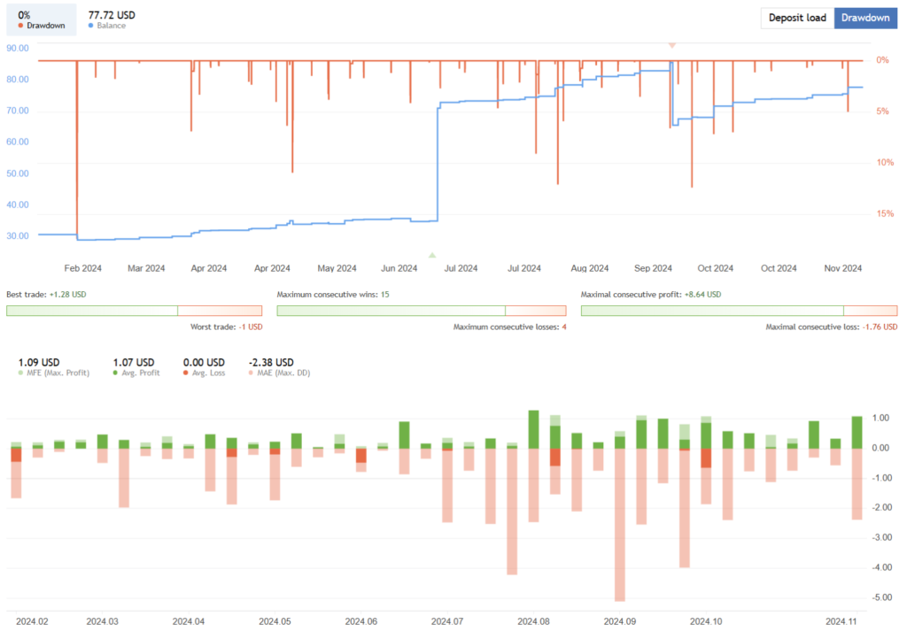 • Stop Loss and Take Profit – Every trade is protected by predefined stop loss and take profit levels, ensuring that risks are contained and profits are systematically locked.