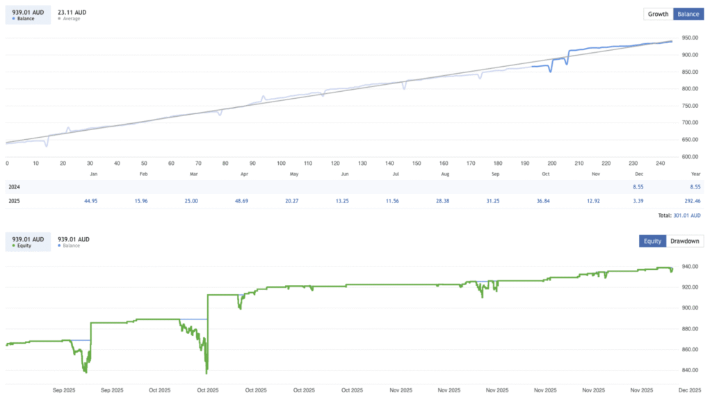 - Strategies – Utilizes 6 distinct strategies, including Asian session scalping, all-day trend scalping, and breakout strategies.