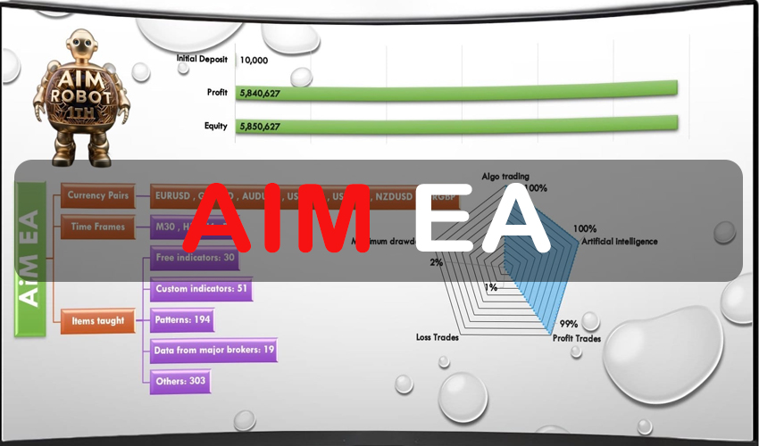 The AiM EA presents itself as a fully automated trading system developed entirely by artificial intelligence. It claims to identify trends using advanced methods and operate with global settings, suitable