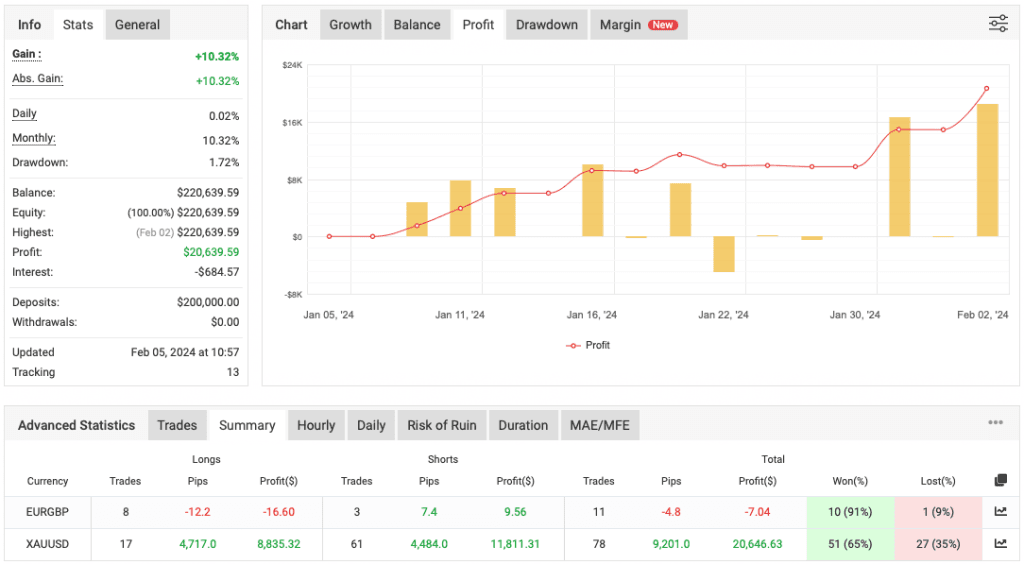• This EA is specifically designed to operate on Prop Firms, but it can also be used on standard account balances of $1000.