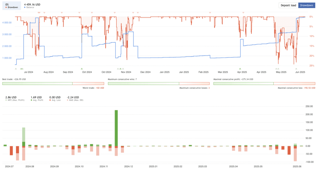 - Stop Loss Protection – Every trade is protected with a 250 pips Stop Loss, ensuring a cap on potential losses.