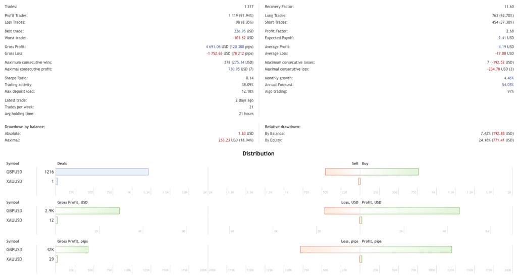 - Profit Redistribution – GBPUSD EA harnesses profits from winning trades to close losing ones, enhancing the overall profitability.