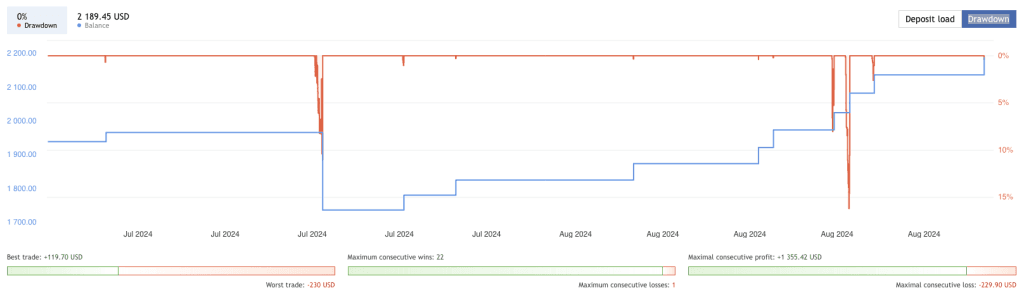- Hard Stop Loss and Take Profit – Each trade is issued with a fixed stop loss and take profit, which reinforces responsible risk management. This also helps ensure predictable risk-per-trade and helps prevent unexpected drawdowns during volatile market conditions.