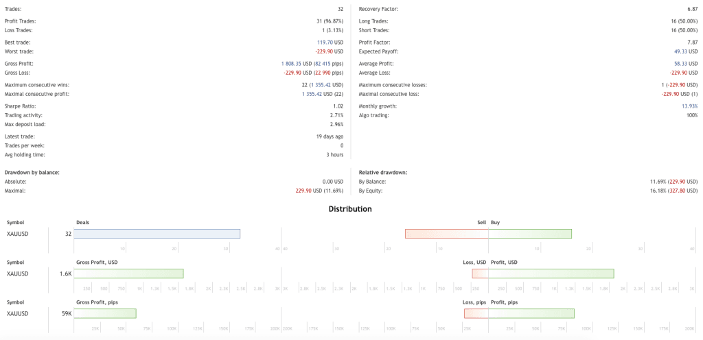 - No Averaging – The EA does not engage in trade averaging, a method that involves adding to a losing position in hopes of a turnaround. This can compound losses, so its absence indicates a focus on strict risk control.
