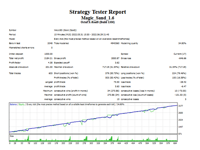 While the EA employs the martingale strategy at times, which can be risky, it also has the potential for a very high return on investment (ROI). The developers of Gold Sand EA highlight its capability to yield an average monthly profit of up to 300%, depending on lot size and risk settings.