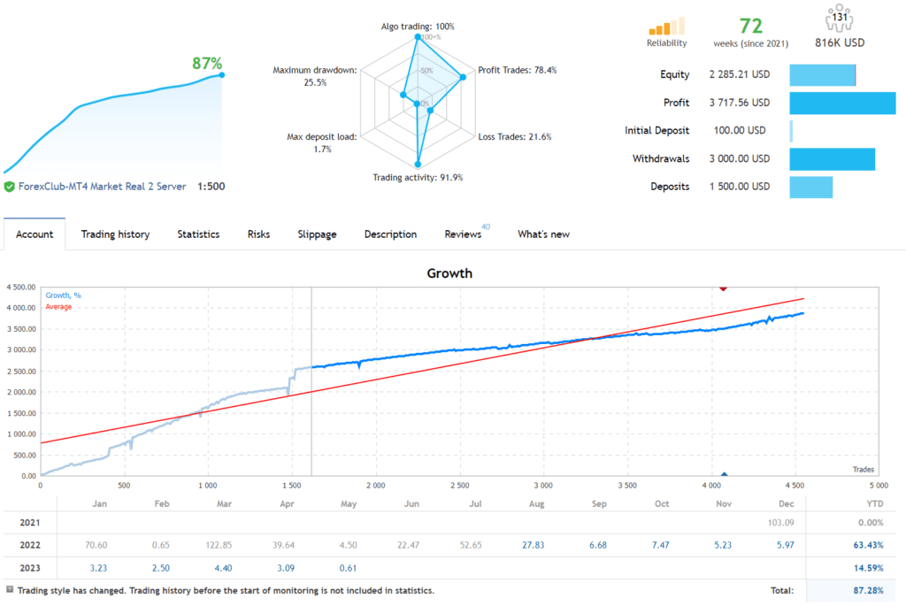 Greezly Bot Pro EA stands out in the Forex trading community due to its continuous operation on live accounts for nearly two years, boasting a nearly 100% growth rate. These results are not just claims but are verified by MQL5 Signal Results, providing traders with confidence in its effectiveness and reliability.