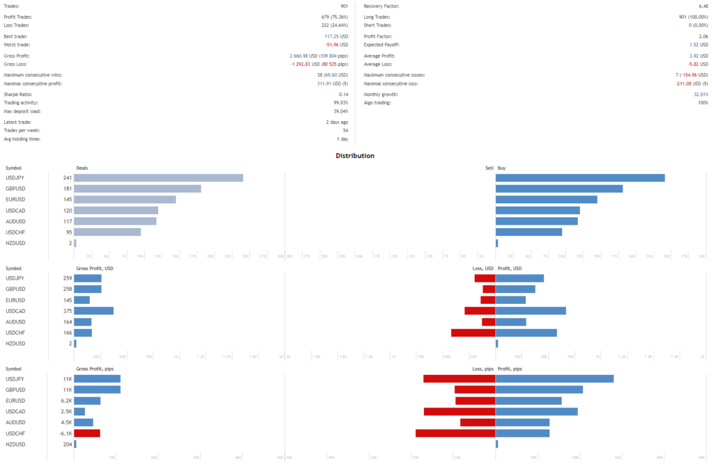 Despite an observed maximum drawdown of 75% in its MQL4 Signal account, JFX EA has demonstrated resilience by maintaining successful operations over three months. This drawdown is mainly due to a smaller initial deposit. For optimal performance, it is recommended to maintain a minimum account balance of $500 per currency pair, with at least $3500 for trading seven pairs simultaneously.