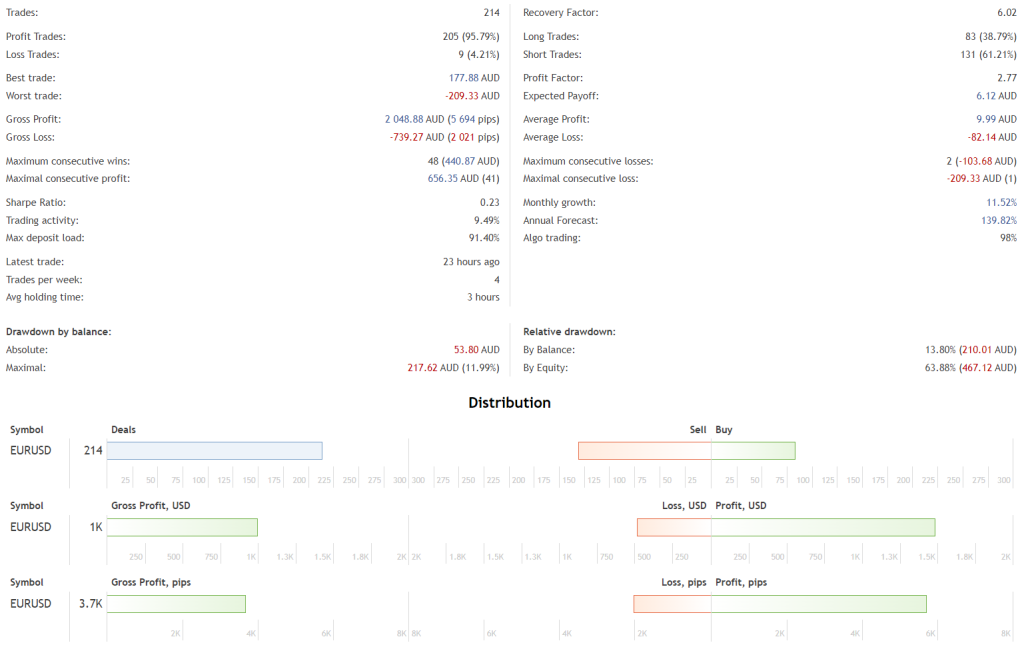 - Risk Management: The EA offers a sophisticated approach to managing unprofitable orders. When a trend reversal signal is detected, it opens one or two additional orders with an increased lot size. By default, the first additional order uses a multiplier of 2, while the second uses a multiplier of 1.