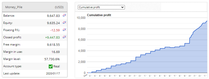With potential monthly returns ranging from 20% to 50% depending on risk levels, Money Pile EA stands out as a lucrative option for traders. The EA requires a minimum deposit of either 1500 USD or 15 USD on a cent account, making it accessible for traders with varying investment capacities.