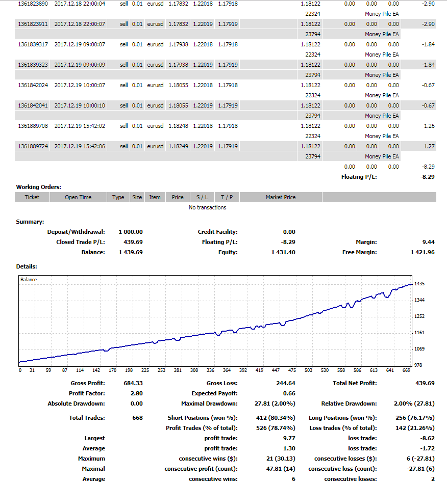 While Money Pile EA can be used with any currency pair, it shows best results with EUR/USD and GBP/USD, due to their popularity and liquidity in the market. The system is optimized for a 30-minute time frame, ensuring that traders can react swiftly to market changes.