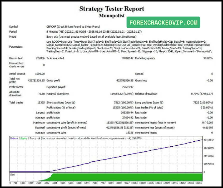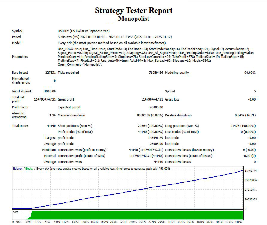 The Monopolist EA does not use martingale or arbitrage strategies. This means it doesn’t double lot sizes after losses or rely on price inefficiencies between brokers. Each position is protected with a stop loss, which helps manage trading risk.
