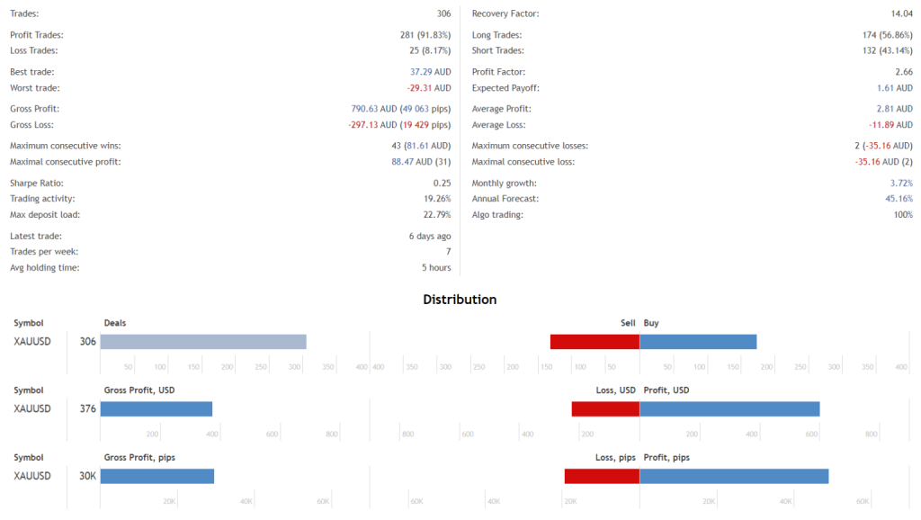 The Profitable MT4 Robot has demonstrated strong performance both in backtesting and live trading on MQL5. Specifically, 3 of its 4 set files have shown positive results, indicating that the system’s trading strategies and risk management features are effective in the gold market.