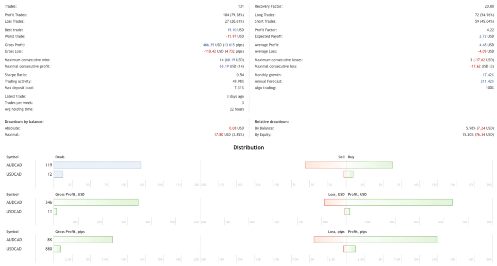 - Currency Pair – AUDCAD (Primary), USDCAD (Secondary observed in tests)