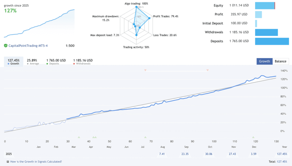 - Volatility Adjustments – The algorithm is reported to expand or contract its grid spacing based on current market volatility, theoretically reducing exposure during high-impact news events.