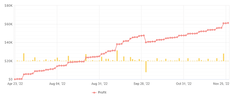 It’s essential to recognize the risks associated with long-term use of aggressive strategies like martingale. While highly profitable, the risk of depleting your trading account is real. However, strategic periodic withdrawals can tilt the odds in your favor, transforming risky operations into break-even, and eventually, profitable outcomes.