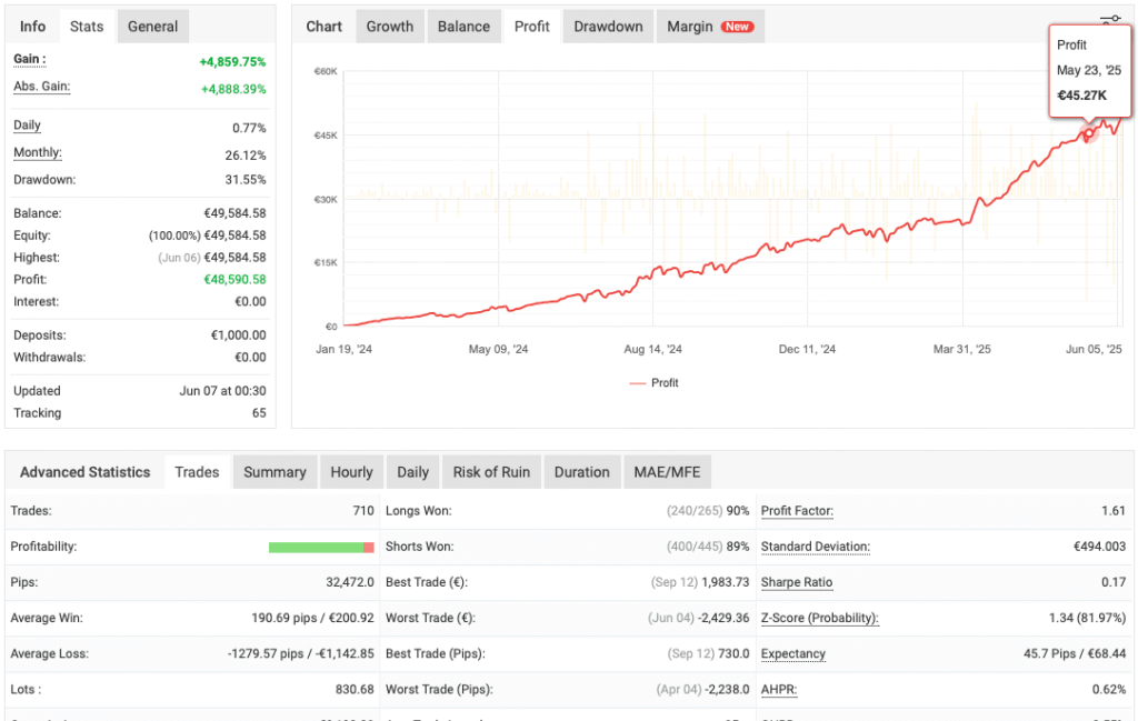 - Risk Management – Each trade incorporates a stop-loss order to limit potential losses. Trades are automatically closed by 5:00 PM EST daily, preventing overnight exposure. The system is designed to hold only one trade open at a time.