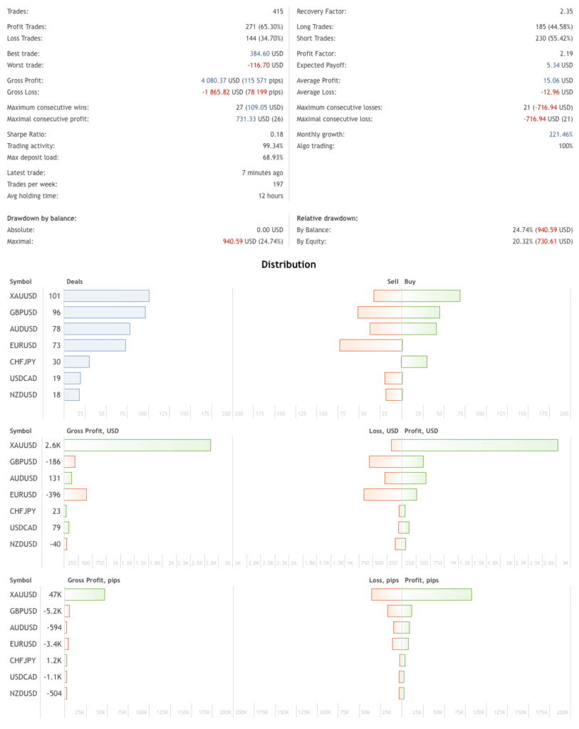 Trend Dragon EA makes use of both martingale and hedging strategies. While this can optimize profitability in trending or ranging markets if used correctly, it’s worth noting that these techniques can also increase risk, particularly during periods of market volatility or strong reversals.