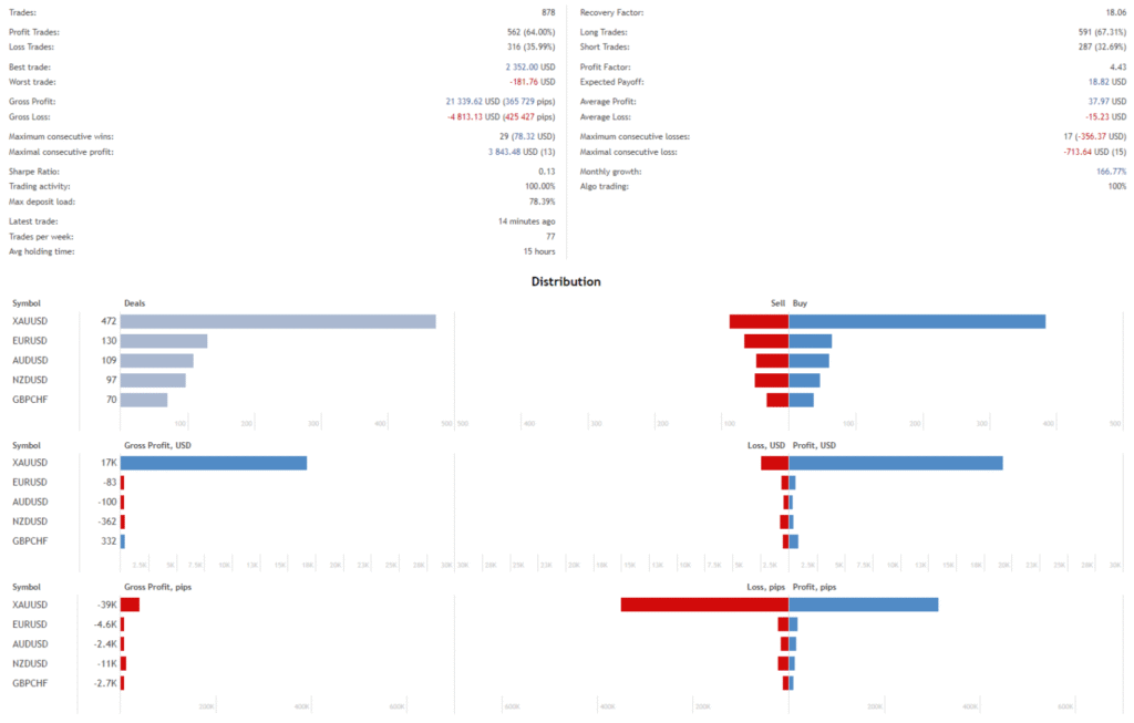Applying the martingale strategy makes this Gold MT4 EA a particularly risky tool. Mathematically, this strategy is flawed for long-term success. Potential users must understand there’s always a risk of losing their invested capital. This fact isn’t just theoretical and can be observed in real-time trading scenarios like live MQL5 signals.