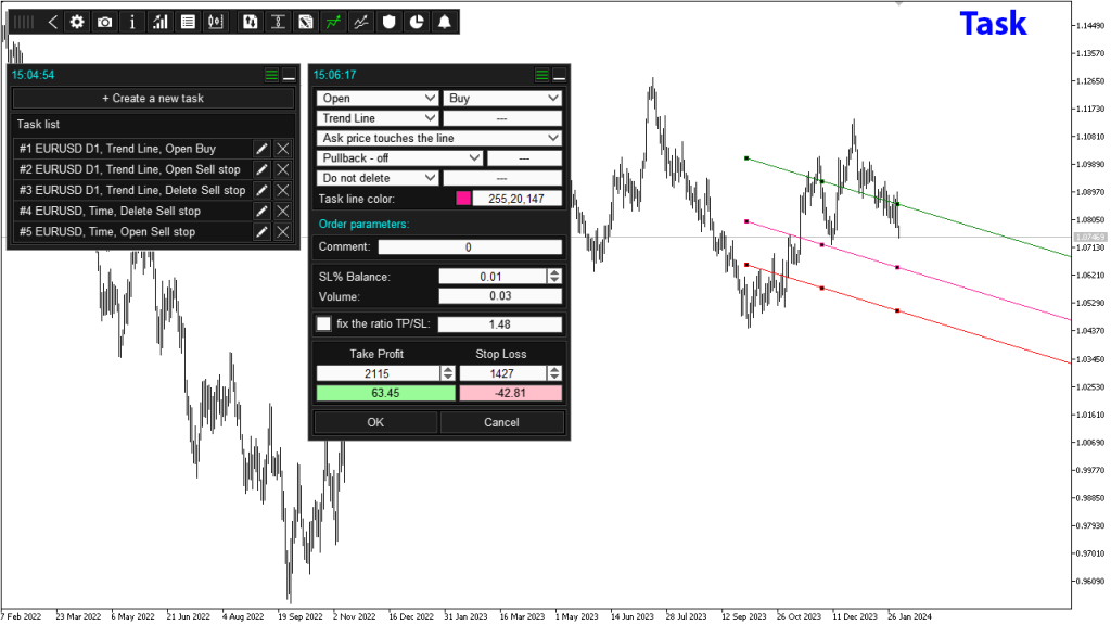 - Visual Trading Levels – You can visualize the trading levels of future orders on the chart, helping you make more informed decisions.