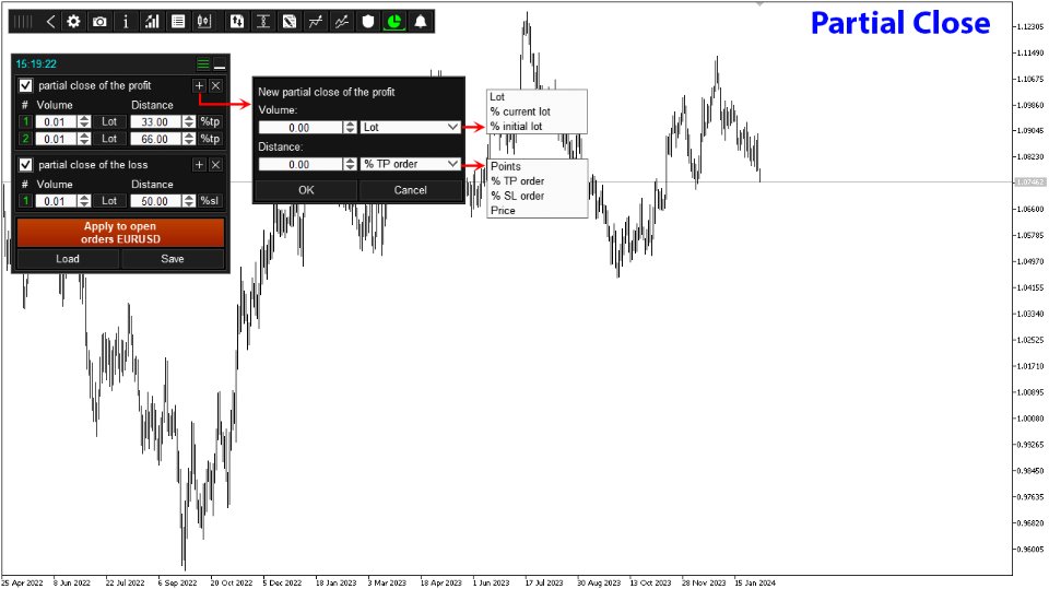 - Open and Close Orders – You can effortlessly open and close pending orders, grid orders, and positions with a single click. It also allows you to reverse or lock positions and even perform partial closures.