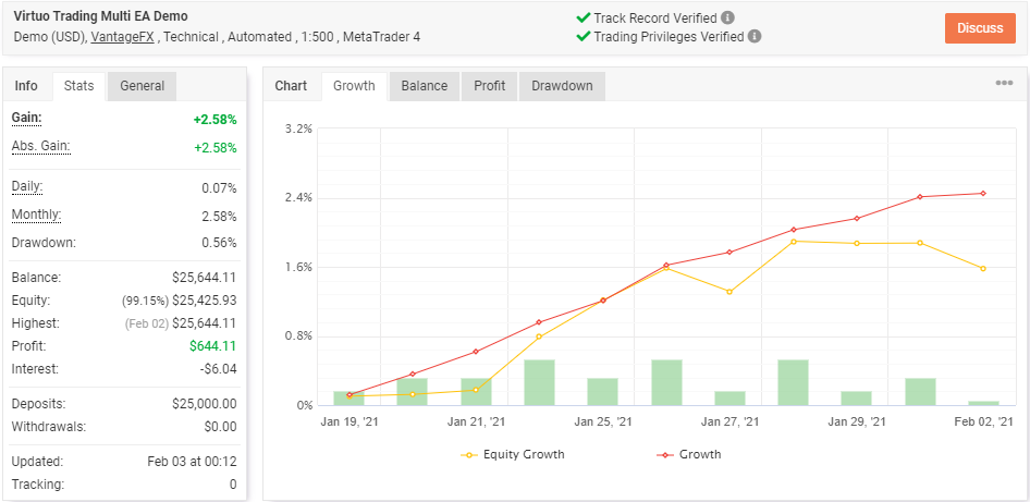 For traders considering the Virtuo Multi Trading EA, a minimum account balance of $2500 or an equivalent cent account is recommended. This financial base ensures that the EA has sufficient capital to execute its strategies effectively and withstand any market volatility.
