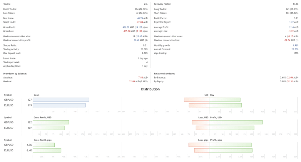 - Supported Currency Pairs – EURUSD, GBPUSD, USDJPY, AUDUSD, USDCHF, USDCAD, NZDUSD.