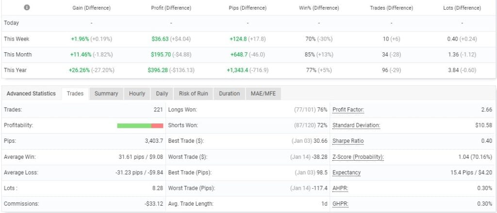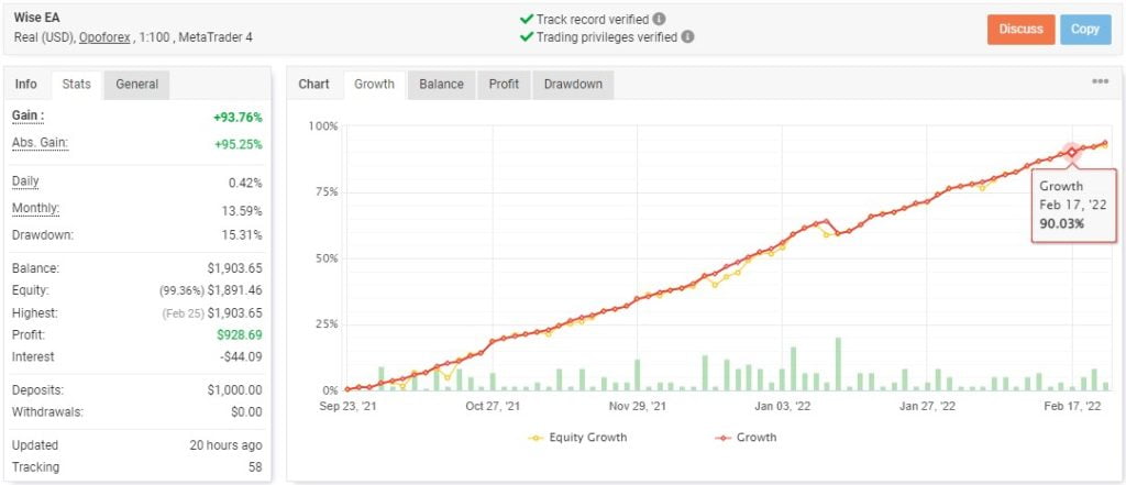 Beyond safeguarding your investment, Wise EA is engineered to promote consistent account growth. With the capability to operate across six different currency pairs, the robot optimizes settings for each to harness potential gains. According to the developers, users can anticipate a monthly gain of 15% to 23%, with a manageable drawdown of 7% to 25%. These figures suggest a promising balance between risk and reward.