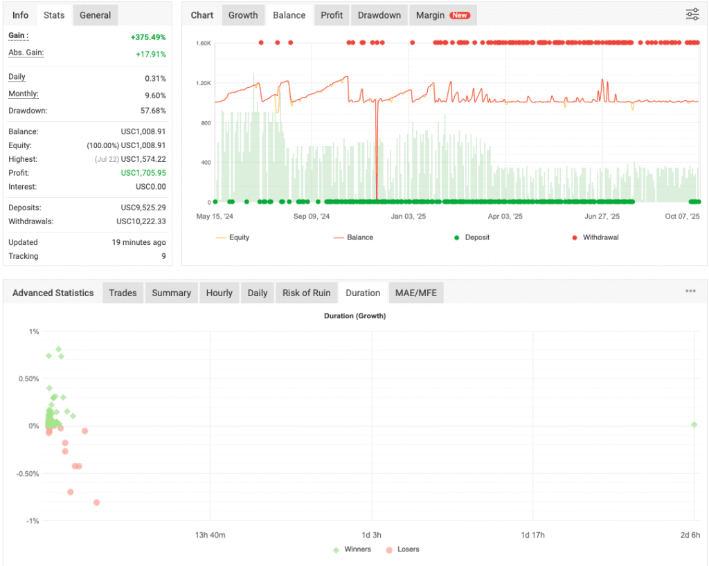 - Direction Bias – During testing, the EA seemed to place only buy trades. Whether this is a fixed setting or an adaptive behavior depending on market conditions is currently unclear.